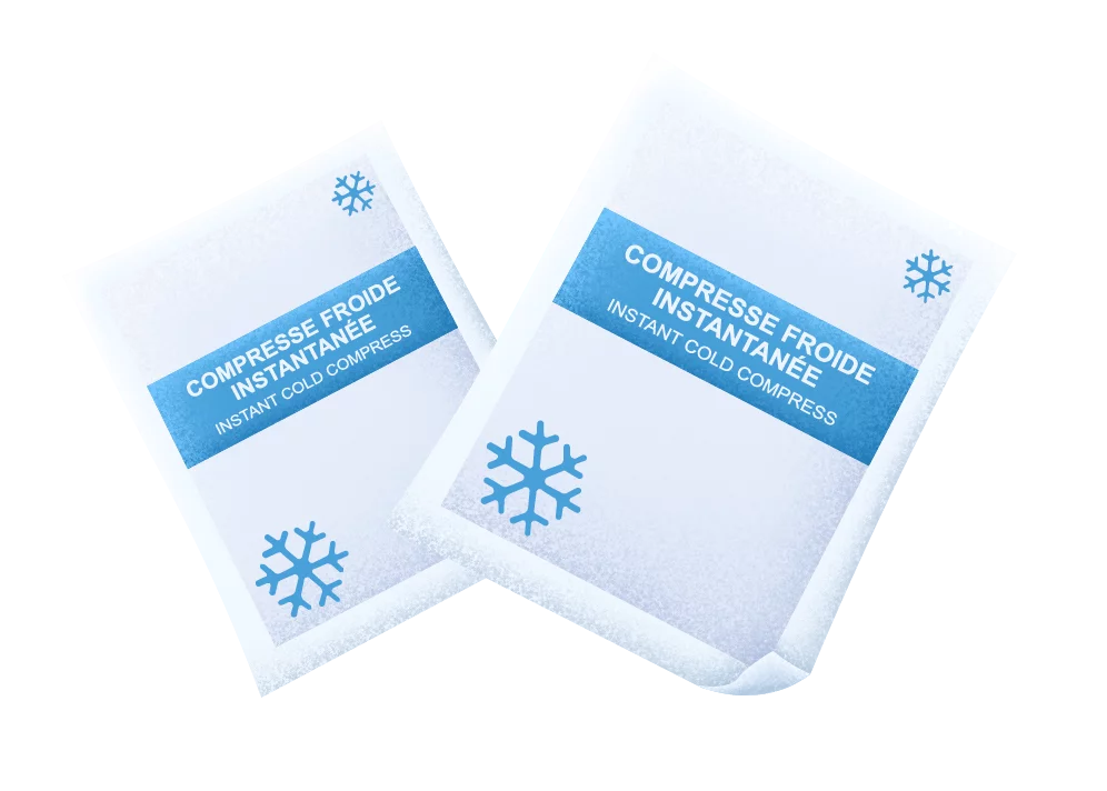 Without wasting any time, Karim begins to apply first aid. He uses an ice pack to reduce the swelling and relieve the pain. While waiting for the ice to take effect, he prepares a makeshift splint using ice sticks and adhesive tape, found in the first aid kit. Very carefully, he immobilised Antoine's injured finger to prevent any movement that might aggravate the injury.